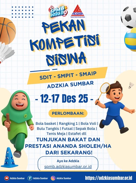 Pekan Kompetisi Siswa hadir untuk siswa SDIT – SMPIT – SMAIP Adzkia Sumbar dengan beragam cabang lomba seru dan menantang.