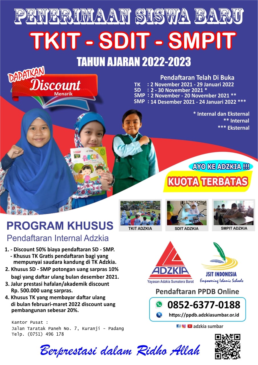 Pendaftaran PPDB Online TKIT - SDIT - SMPIT klik http://ppdb.adzkiasumbar.or.id